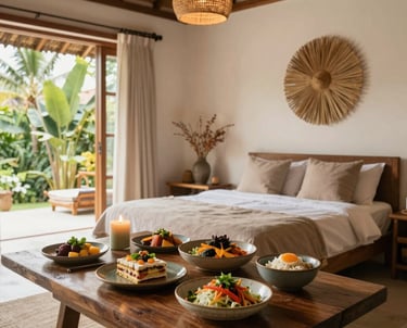 Enjoy a wellness package including yoga sessions, spa treatments, and healthy Bali-inspired meals in a tranquil setting.